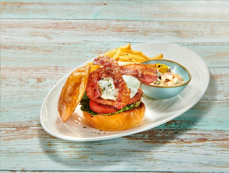Beef Pattie, Burger Bun, Egg, Fresh Green, Luncheon Meat, Bacon & Fries